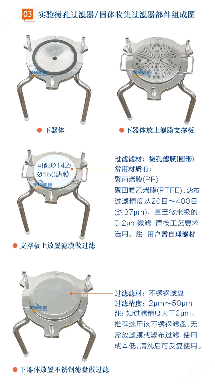 4.150型濾器可配圓徑?142mm、?150mm濾膜使用,選擇更加多樣。
